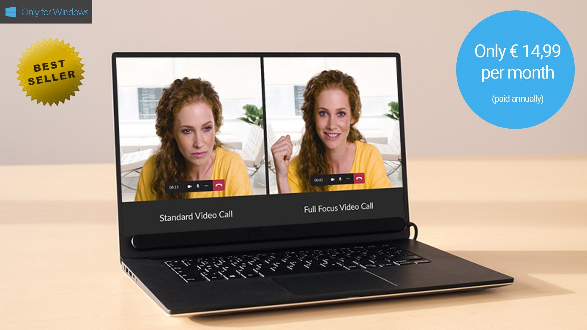 The premium solution for eye contact in your video conferences with no A.I.-based manipulation of the video stream.